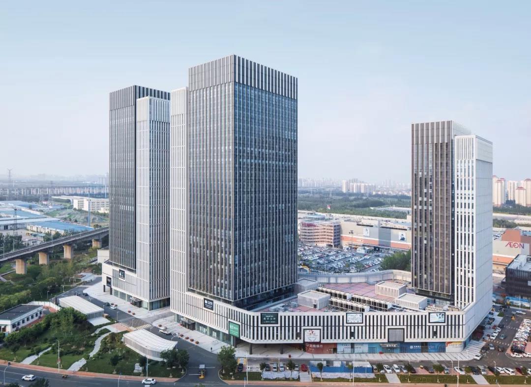 原本的建筑塔樓體量較敦實(shí),設(shè)計(jì)師在新城市中心使用了玻璃幕墻,調(diào)整了整個(gè)百葉窗的位置和間距,通過增加鋁板大百葉窗,使得整個(gè)主體幕墻和實(shí)墻之間的比例擴(kuò)大,產(chǎn)生一種明顯的虛實(shí)對(duì)比效果,從視覺上優(yōu)化了建筑的視覺效果,從視覺上將建筑分為兩個(gè)體塊,重新組合出了輕盈的體量關(guān)系,這種強(qiáng)烈的虛實(shí)變化使得建筑顯得高挑挺拔,整體感更加強(qiáng)烈、鮮明,玻璃立面使得商業(yè)裙房的商業(yè)價(jià)值最大化,同時(shí)和商業(yè)裙房連接為一個(gè)有機(jī)的整體。