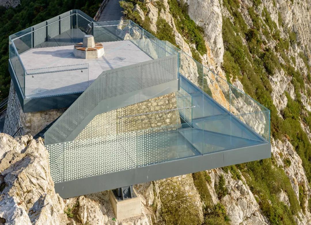 人行天橋是為直布羅陀皇家政府在 Upper Rock 自然保護區建造的最新景點,作為改進項目的一部分,目的是向當地人和游客提供欣賞直布羅陀巖石的新的和多樣化的方式。 更大范圍的總體規劃項目還包括建造一座70米長的懸索橋、修復軍事炮臺和設施以及在新建立的步道上引入解說和方向標識。