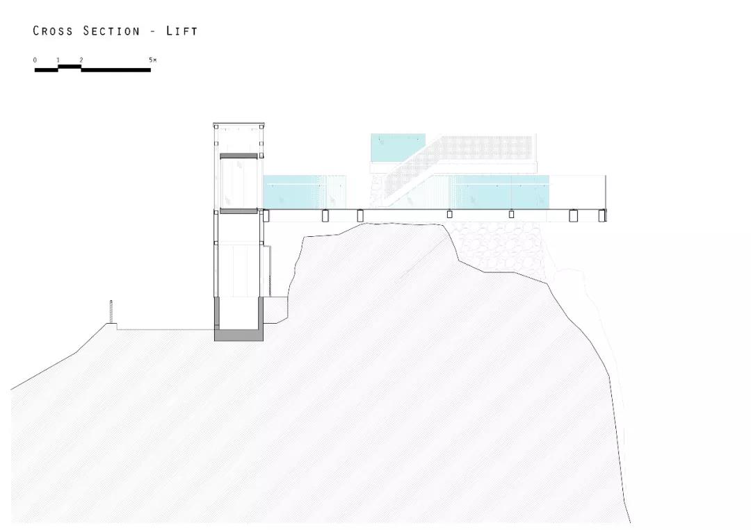 新增加的建筑構成了2.5米寬的走道,懸挑在陡峭的地形上,全玻璃地板和欄桿使各個方向的視野最大化。該結構用70m的巖石錨固定在巖石上,每個錨支撐15噸的拉力,確保建筑不僅能承受上面游客所施加的荷載,還能承受在巖石山脊上產生的超過150公里/小時的風速。游客還可以從下面道路通過全景升降機到達,作為整體結構設計的一個組成部分將整個懸臂結構固定在地形里。