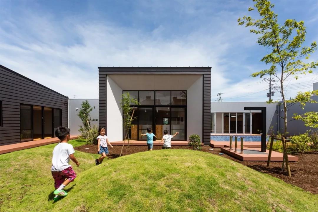 項目位于日本神奈川 Zama 的一個低層住宅區。這里需要新建一所托兒所,滿足至少110名等待入學的兒童。近年來,由于來自成年人的過度保護和過于嚴格的監管,孩子們很難創造性地玩耍。更糟糕的是,大多數的課外活動,孩子們被動地學習。因此,他們自發思考和行動的機會正在減少。考慮到這種情況,我們將這個托兒所規劃為“培養獨立性”的概念,在這里孩子們會思考并創造一個新的故事,并且迎接很多挑戰。