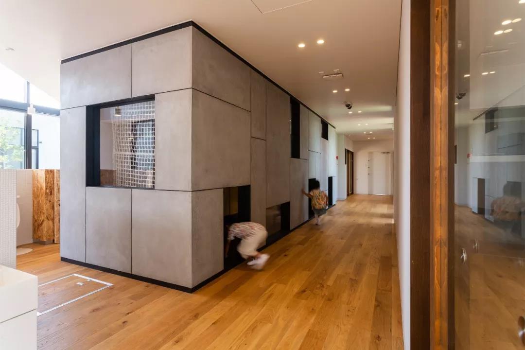 第二是做很多上下動作。外面有幾座小山,里面有一個攀爬網。這給了孩子們只在平面上不可能創造出的新的創造游戲的機會。通過這些元素,孩子們的體力會在玩耍中得到發展。