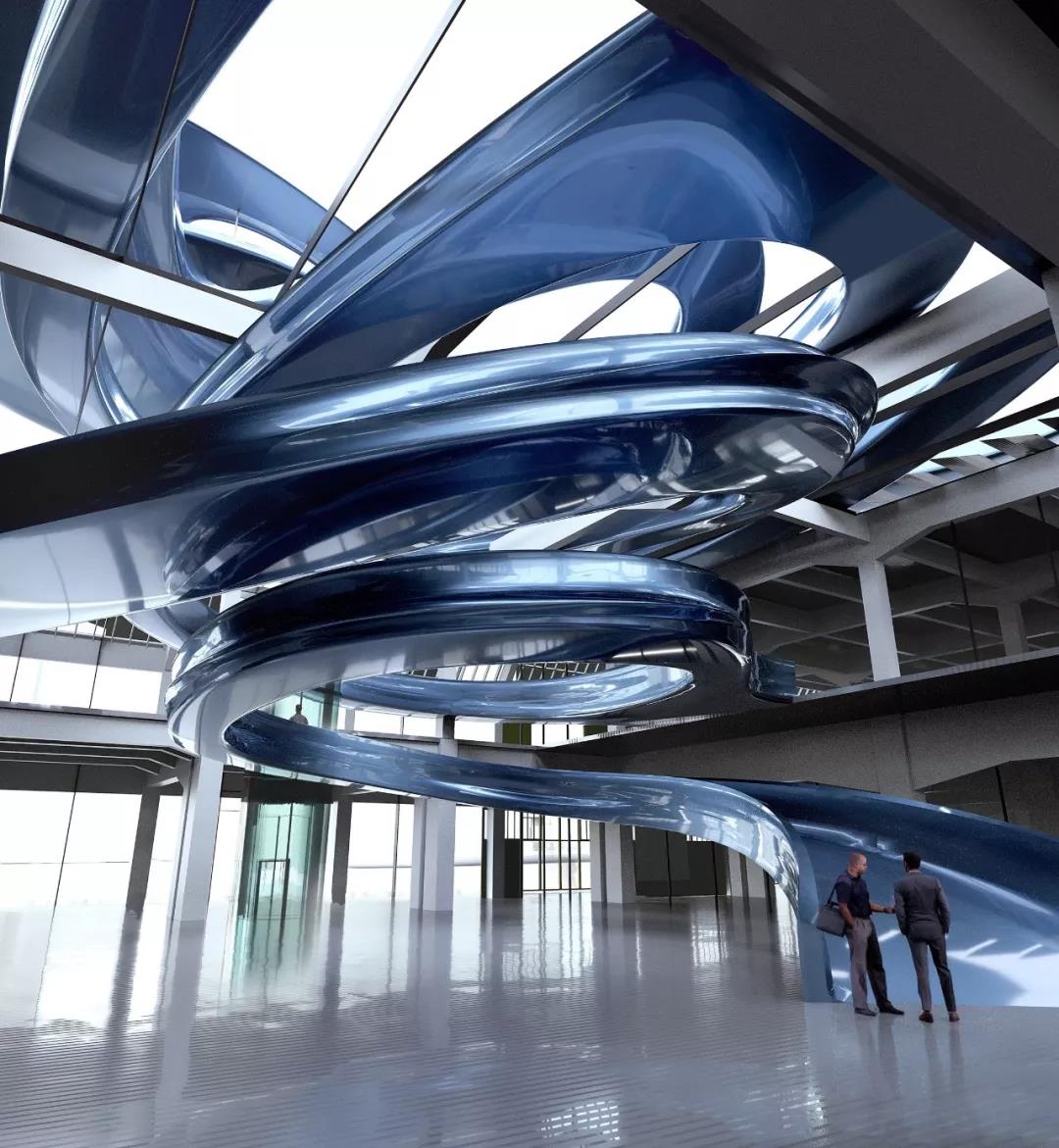 MAD設計的樓梯,貫穿地面與建筑樓層,最終直達觀景臺。樓梯與觀景臺,連成一體,整體近觀就像是一件雕塑藝術品,吸引人們前往探索;遠觀則似一道龍卷風,從地核往大地向天空騰升,最終消隱于天際中,似是呼應著這座建筑見證了荷蘭、甚至歐洲的過去、現在與未來。
