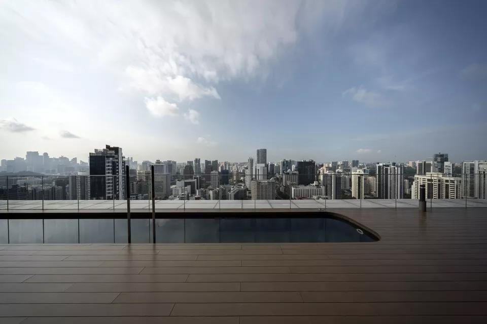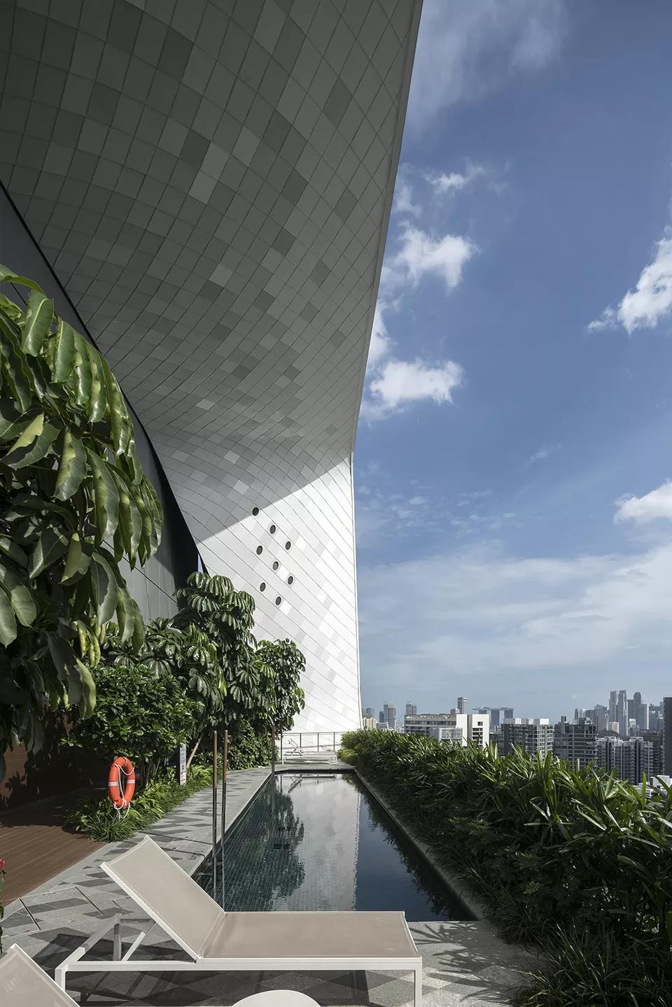 位于較低天空框架平臺的泳池 ©Darren Soh