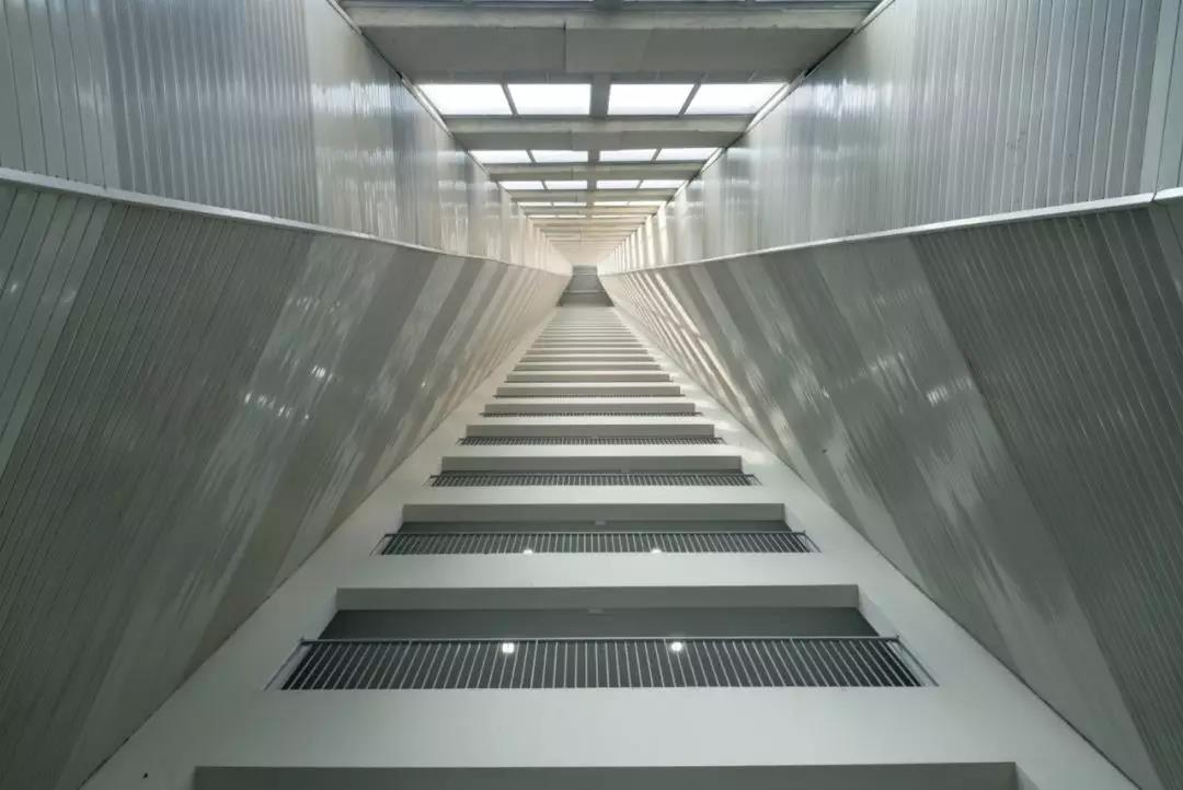 底層的庭院由四層樓高的三角形大門連接,形成了一條500米長的步行道,包含不同的功能,一些空間用于玩耍,另一些則作為運動場所、花園等等。這些令人印象深刻的活動設施之所以能夠實現,是因為該項目的開發規模:一個項目中擁有如此多的公寓,50米的游泳池之類的豪華設施只在總成本中增加了很小的一部分。