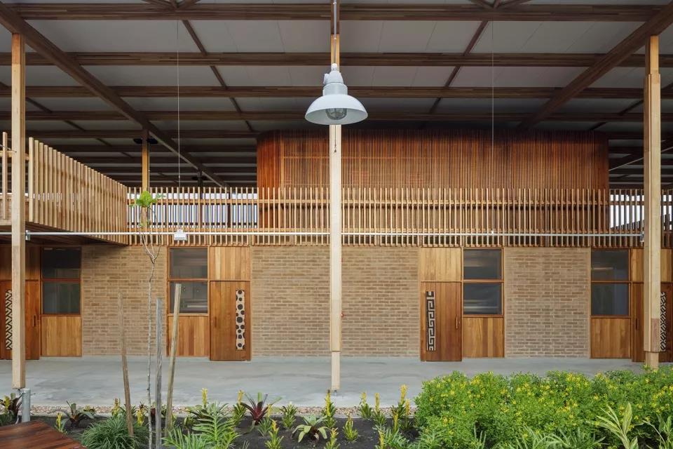 兒童村項目將當(dāng)代美學(xué)和傳統(tǒng)技術(shù)充分結(jié)合在一起,并完全采用當(dāng)?shù)刭Y源和技術(shù)建造,因此被評為們描述為“重塑了巴西的鄉(xiāng)土風(fēng)貌”。建筑的鏤空墻是由在現(xiàn)場手工打造的土磚砌筑而成,擁有良好的保溫性和美觀性。
