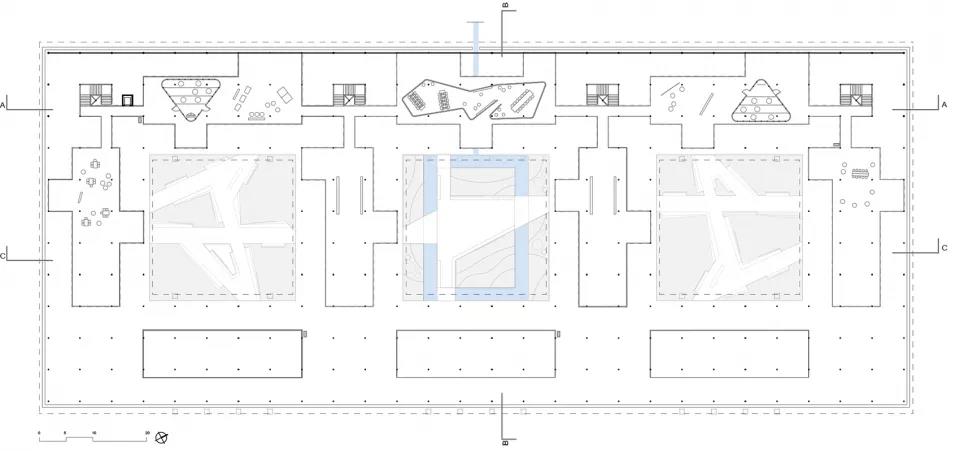 二層包含了一系列靈活的公共空間 ©Leonardo Finotti