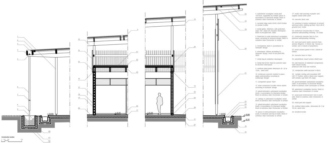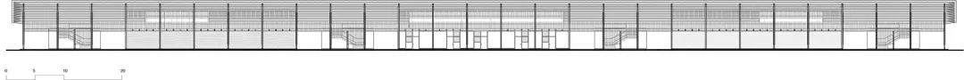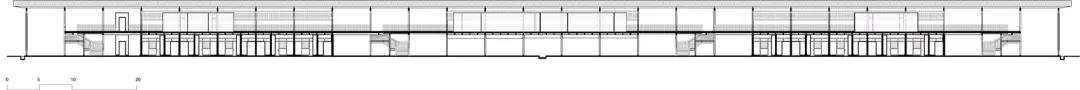項目所在地區(qū)屬于熱帶氣候,夏季氣溫常常達(dá)到40多度,這也為建筑師帶來了挑戰(zhàn)。他們的解決辦法是,利用由交叉層壓木梁和立柱構(gòu)成的巨大屋頂來提供遮陽,同時借助向外伸出的頂篷來創(chuàng)造室內(nèi)和室外的過渡空間。