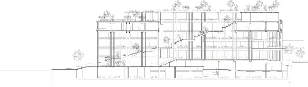 屋頂同樣覆蓋以茂密的植被,包括用于城市農(nóng)業(yè)的種植床。這些花園不僅能夠為社區(qū)帶來更加優(yōu)美的景觀,同時也能夠促進集體性的園藝活動,通過種植和維護花園來建立更加牢固的社區(qū)紐帶。