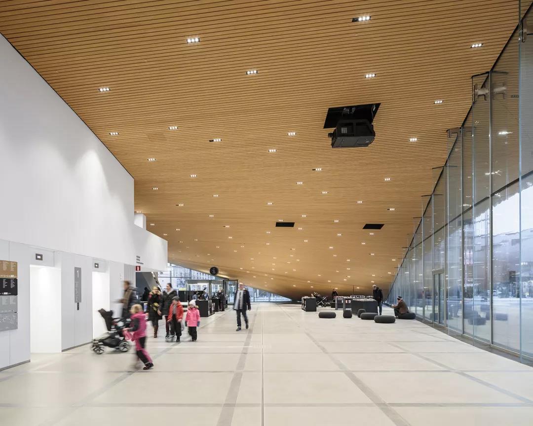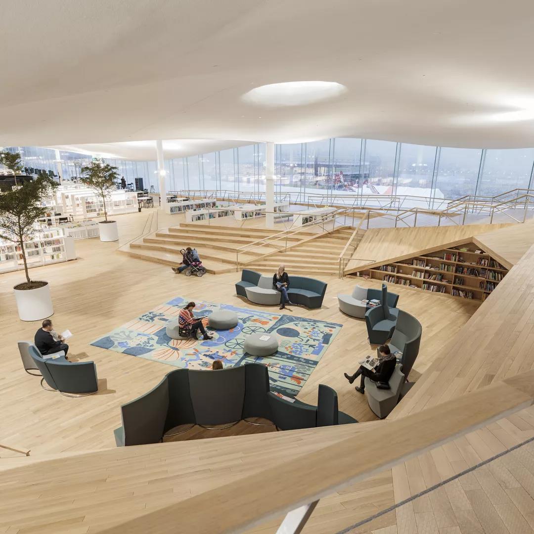 圖書館的首層空間與議會大廈對面的Kansalaistori市民廣場形成了無縫銜接。靈活的空間可用于舉辦各類小型和大型活動。