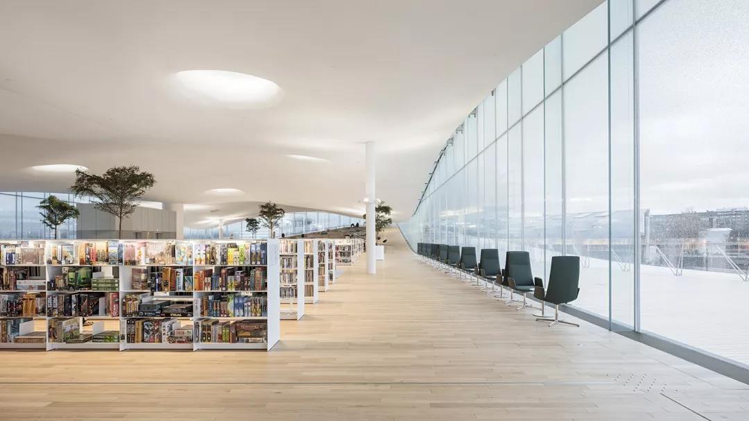 在這里,當代圖書館的強大功能與先進技術帶來的種種可能性發生了精彩的碰撞。安靜平和的氛圍使來訪者能夠沉下心來進行閱讀、學習、思考和放松。樓層的高度更帶來360度無阻礙的城市視野。