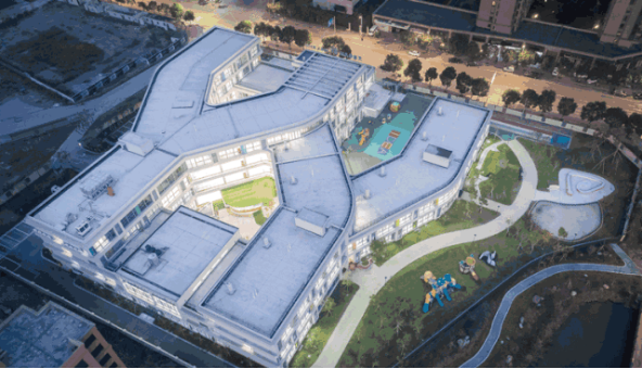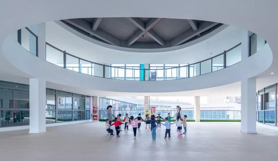 幼兒園是童年記憶的重要部分,設計的初衷是讓每個孩子能夠自發的去探索和發現自然,利用通透的大玻璃窗、陽臺、屋頂平臺、各種院落構成啟發型和體驗型的場景。