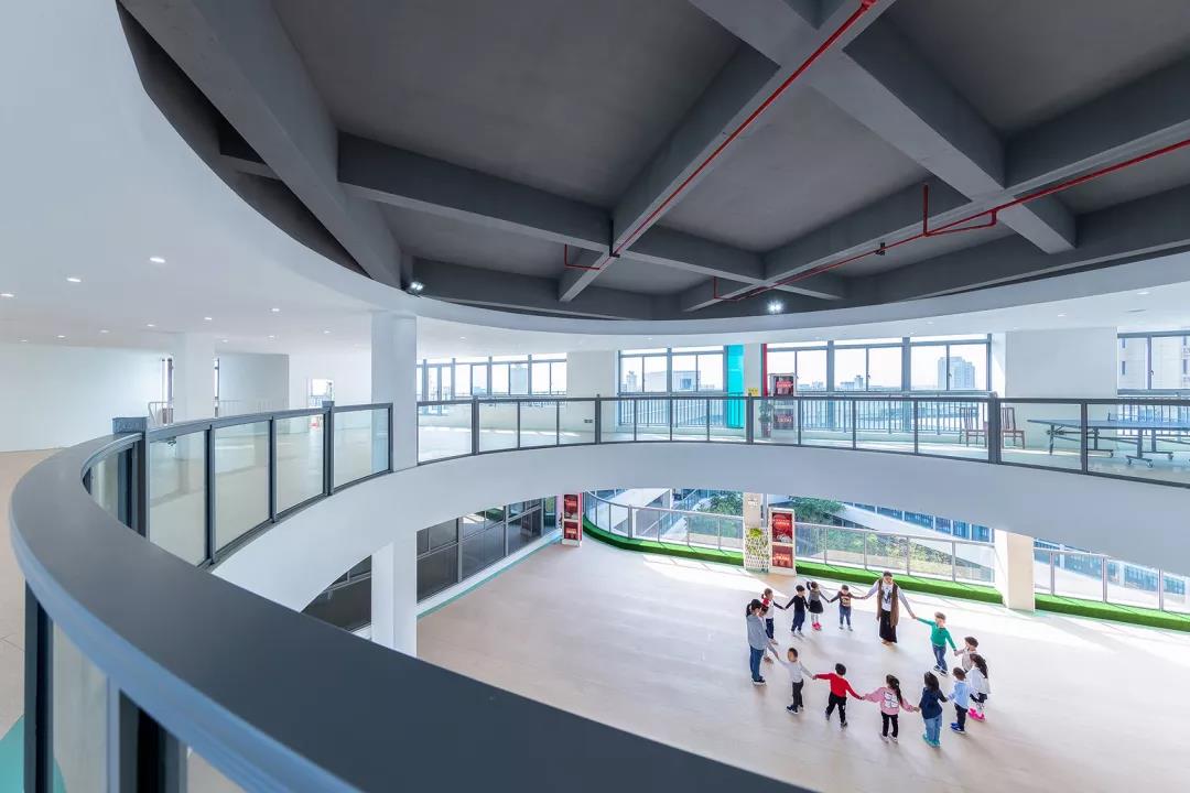 一至三層線型走廊區域是孩子和老師們班級的生活、學習、玩樂空間