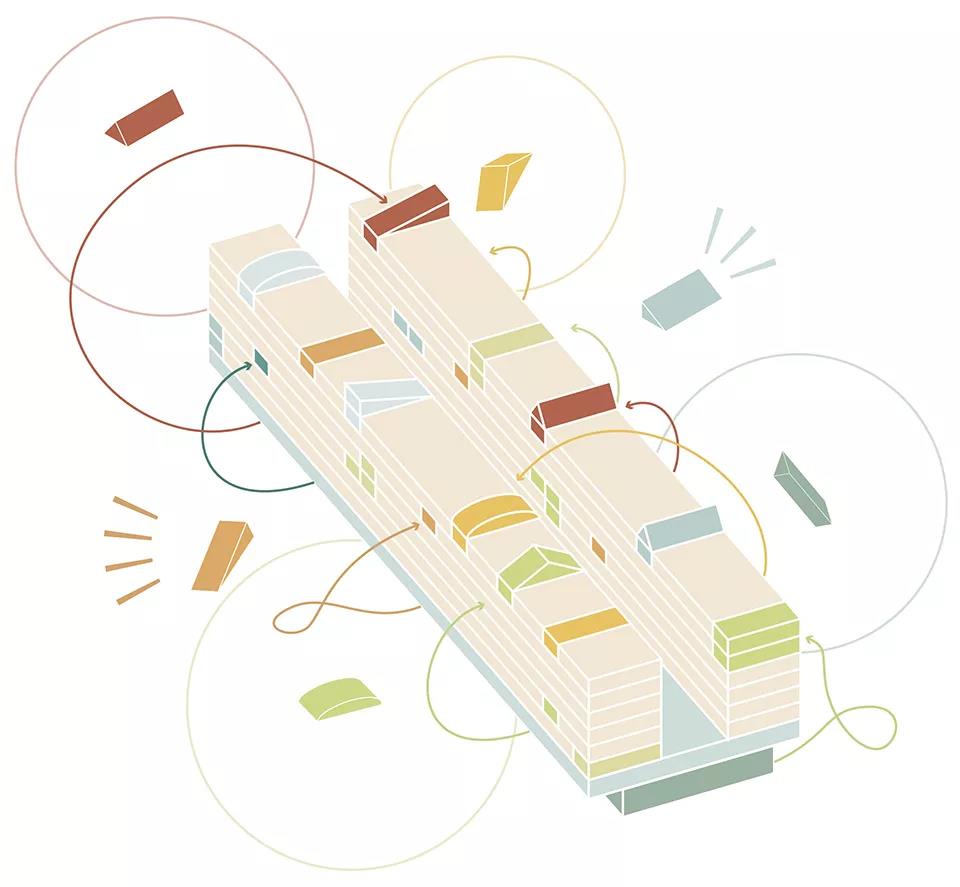 相較于固定不變的方案,此次MVRDV將采用靈活的設(shè)計(jì)體系。在設(shè)計(jì)開發(fā)進(jìn)程中,該方案能與社區(qū)的需求和愿景協(xié)同發(fā)展。