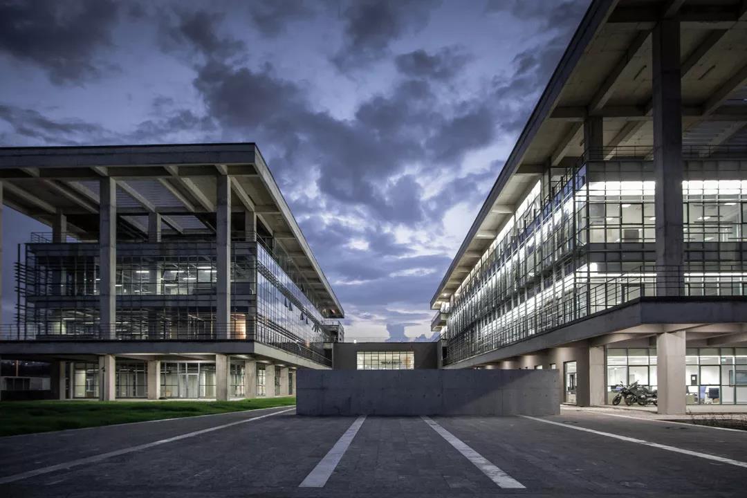 建筑的長度和布局充分迎合了用戶的使用需要。當從園區望向研發中心時,建筑的體塊在東西方向上延伸,展示出一種動態的幾何。