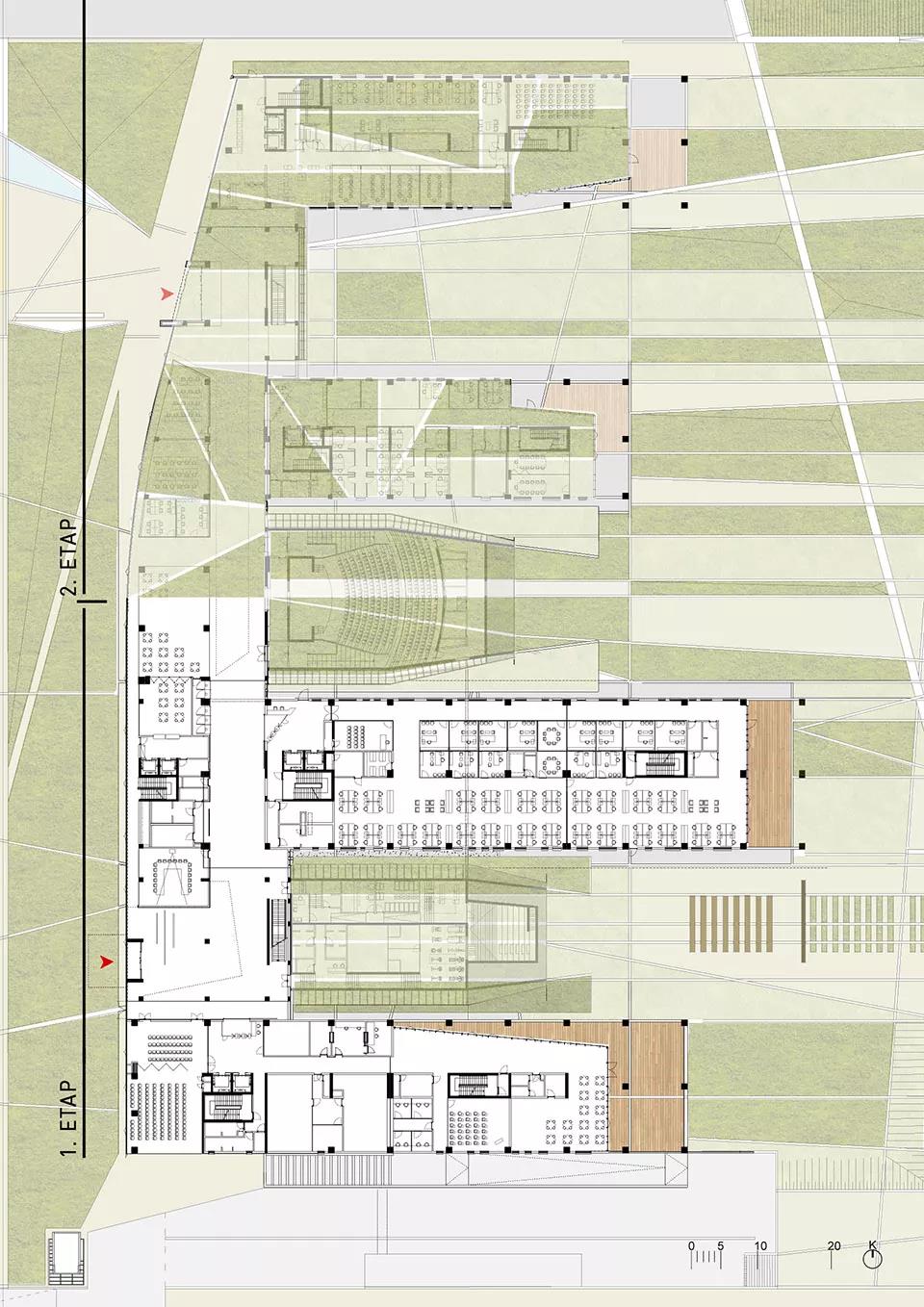 該項目的西面是園區的入口道路,東面和北面是標志性的METU園區景觀。設計的主要目標是建造一座與周邊環境形成良性連接的大樓,為使用者帶來舒適且可持續的高品質環境。