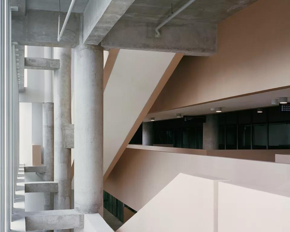 第一個學習空間是大面積連續的開放工作室空間,設計目的是促進學生之間的合作和對他人的工作的好奇心。第二個空間更具思考性,研究人員和研究生使用的一系列小房間環繞著景觀空間,第三個空間是中央展示區,它向下延伸到社交廣場,在通向建筑和設計工作室的不同路徑上都能夠看到這里,使得設計對話成為學習的核心活動。