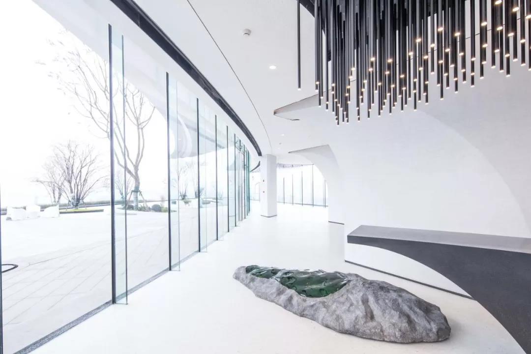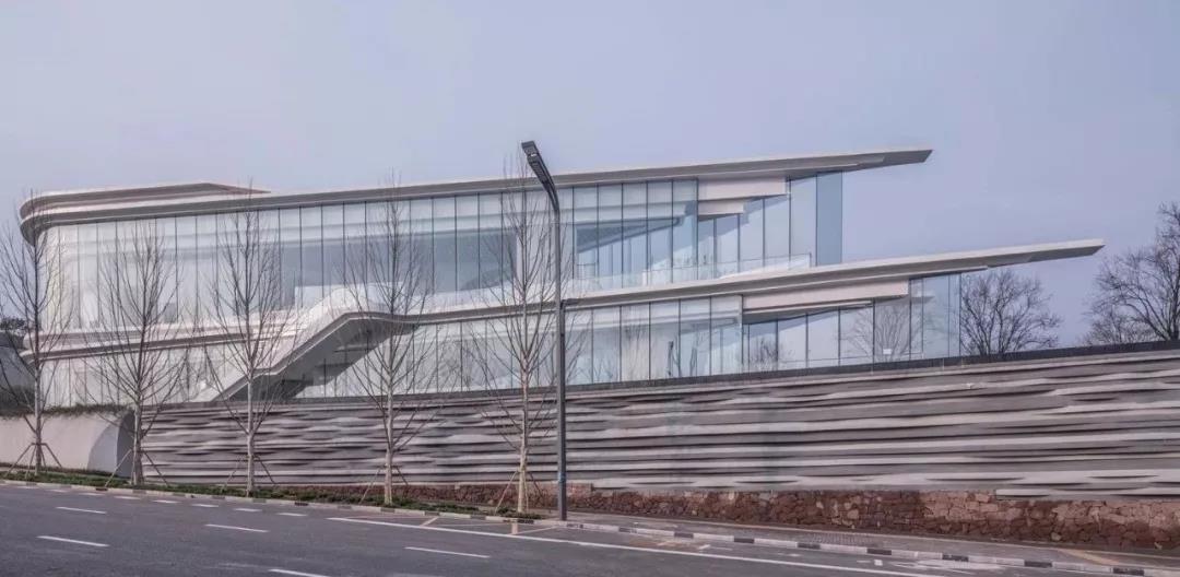 建筑謹慎而謙遜的退讓,對環境表達一種更強烈的回應;順應場地和自然的特征,可以賦予建筑更宏大的氣場。極簡的設計語言,是一種對于城市和生活的理解,使其更深入地植根土地之上,直擊人心。建筑二層整體進行了旋轉,借助地勢加深臨崖感,營造具氣勢的震撼氛圍。