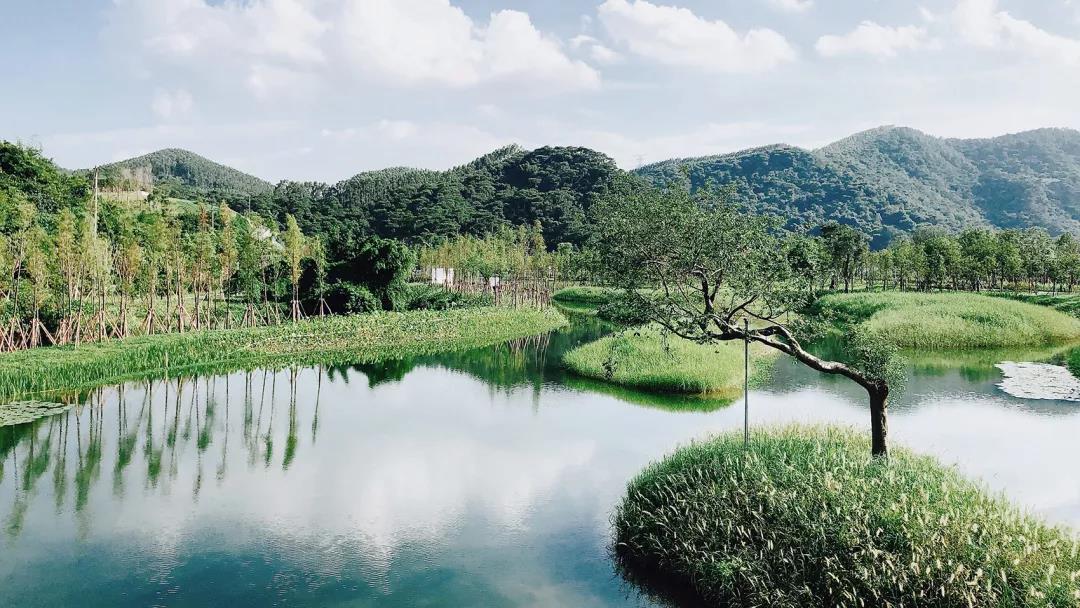 在設計開展之初,我們就確立了利用場地中豐富的水體及原生植被資源,大面積采取輕度維護的原則和理念,以降低生態系統的負擔。從山林、河塘、濕地、路徑等四個方面著筆,體現對原生態的延續。