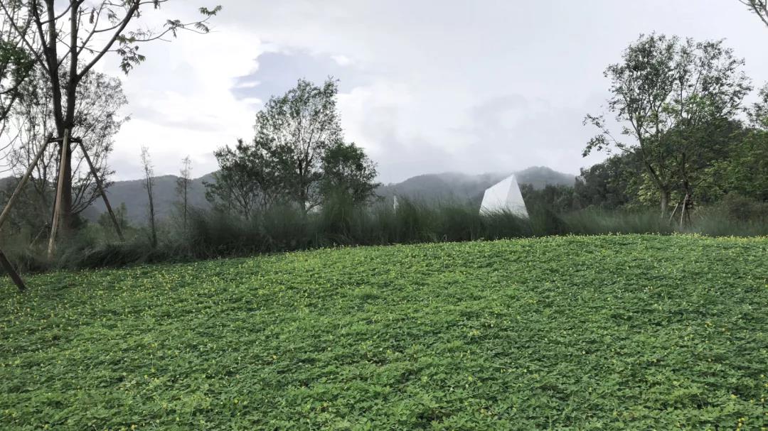 本項目位于江門市蓬江區大雁山腳下一個僻靜的村子旁,占地面積約15公頃,場地中有一座植被豐茂的小山,周邊更有大量桑基魚塘等充滿嶺南風情的人文景觀資源。