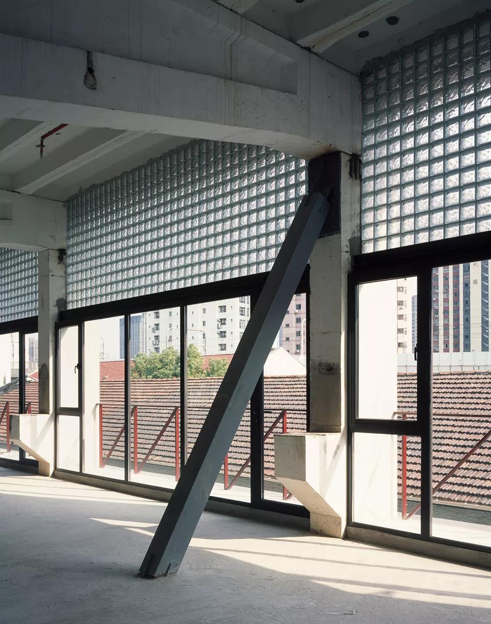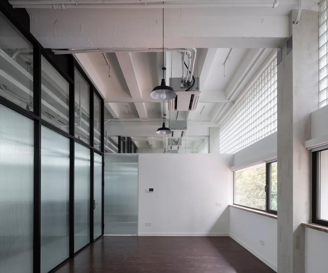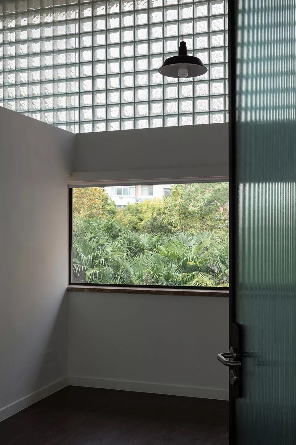 4號樓辦公單元,窗過梁以上的實墻全部替換為玻璃磚,讓室內明亮起來