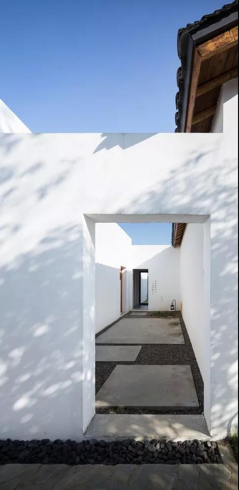 進入原舍,首先是主入口部分:將原來主入口調(diào)整至西側(cè),原來面對湖水的入口則留作適宜停留休息的內(nèi)部景觀空間,這個位置后來增加了游泳池。