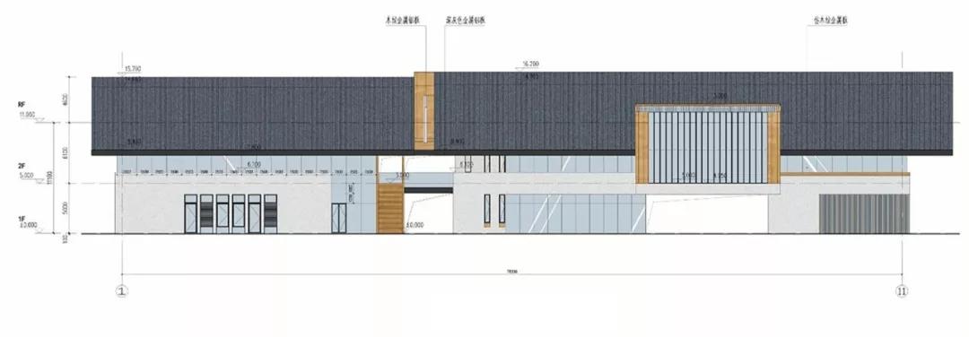 由于用地沿城市展示面很長(zhǎng),我們希望設(shè)計(jì)一個(gè)橫向力量感很強(qiáng)的方案,通過一條流動(dòng)感十足的白色欄板統(tǒng)御輕質(zhì)身段,加入現(xiàn)代建筑語匯,與形體主體的懸浮屋頂和諧共存。