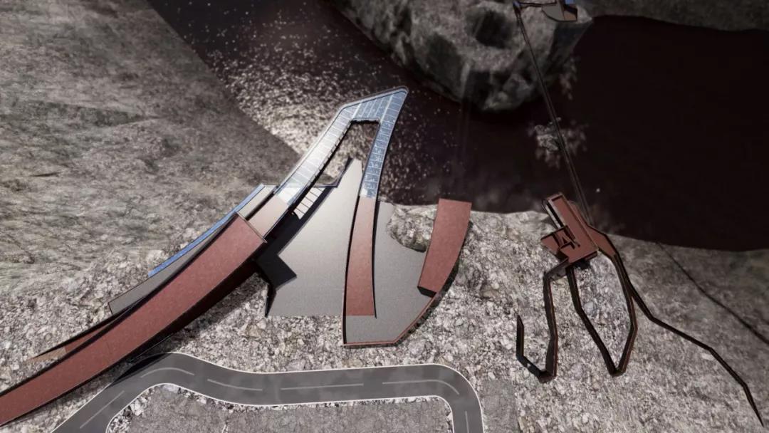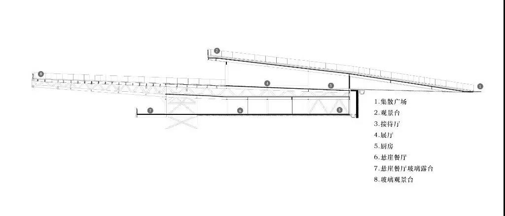主觀景臺(tái)集接待中心、展覽館、懸崖餐廳、多功能超市、公共衛(wèi)生間等功能于一體。項(xiàng)目同時(shí)融合跨江滑索、懸崖秋千、懸崖觀光電梯、挑戰(zhàn)橋、跨江玻璃吊橋、登山棧道等觀光游樂設(shè)施,使整個(gè)項(xiàng)目具有更豐富的參與性和互動(dòng)性。