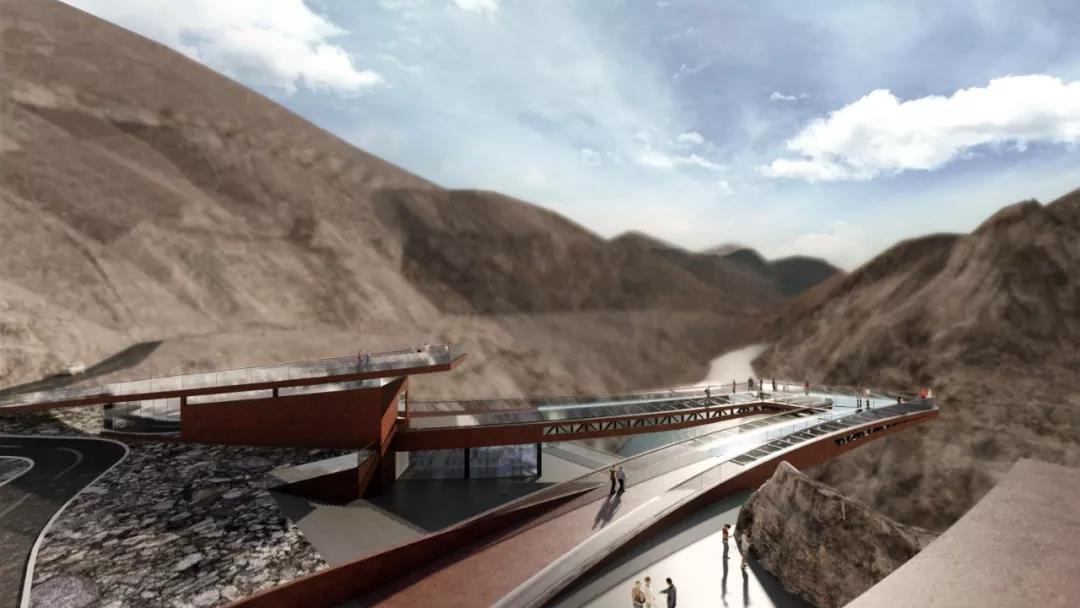 觀景臺(tái)設(shè)計(jì)力求將怒江72拐之險(xiǎn)發(fā)揮到極致,“險(xiǎn)中求險(xiǎn)、挑戰(zhàn)自我”,打造高原地區(qū)旅游體驗(yàn)標(biāo)桿。為體現(xiàn)西藏建造業(yè)的高速發(fā)展、生活?yuàn)蕵返挠袡C(jī)擴(kuò)展以及地域文化的繼承延續(xù)。全項(xiàng)目以藏紅色耐候鋼板為主基調(diào),以72拐盤旋轉(zhuǎn)折的道路線型為設(shè)計(jì)元素,在100多米落差的怒江峽谷懸崖峭壁之上,創(chuàng)造性的設(shè)計(jì)玻璃觀景平臺(tái),向外懸挑27米,地面鋪設(shè)全透明玻璃,使途經(jīng)此地的自駕人群深度體驗(yàn)怒江峽谷的壯美狂野、蕩氣回腸。