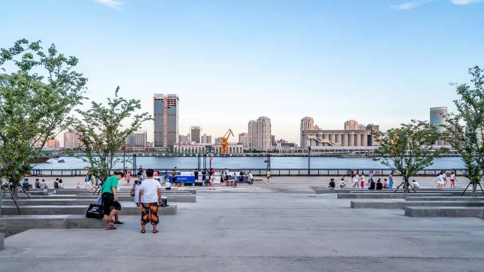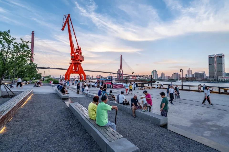 濱水空間被設定為城市看臺,轉型為新的吸引點,滿足日常使用以及舉辦重要活動,并且能夠欣賞到上海優美的天際線。在開放?日迎來了近2萬人次的到訪者,其中有曾在之前工廠工作過的老人。重振活力的濱?區以?業遺存與自然公園的共存方式,真正回歸于公眾。