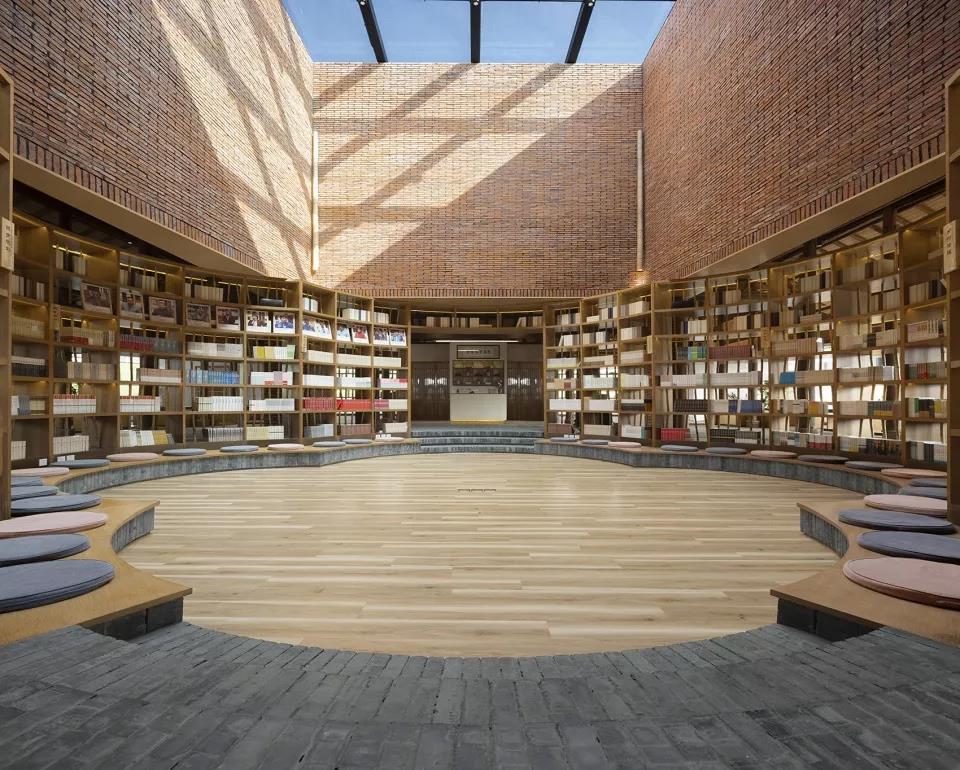 和盛書院中間是一個類似四合院一樣四面圍合的院落,設計師通過改造將它變成一個中心講堂。院落的上方以高聳的天井封閉,塑造出空間的儀式感。同時頂部選擇透光天窗處理,讓室內與外部自然環境形成連接,通過自然光線的變化,在封閉的空間內又創造出自由與開放的體驗。