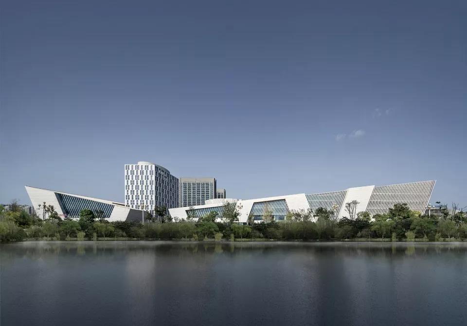 地方象征:“四館”整體造型的靈感源自 “漕運(yùn)之都”淮安最具特點(diǎn)的漕舫,城市博物館靈感來(lái)自厚重的古城樓,音樂(lè)廳的造型由12片“花瓣”組成,象征淮安市花月季綻放。