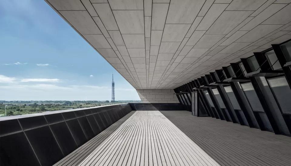層層出挑的室外空間:為獲得更多的戶外景觀空間,增加室內(nèi)外空間滲透,建筑結(jié)合外傾墻面,層層疊疊設(shè)置了多處陽(yáng)臺(tái)、露臺(tái)、屋頂花園和灰空間,長(zhǎng)80米的鋼筋混凝土結(jié)構(gòu),懸挑達(dá)12米。