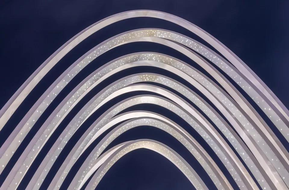創新一方由四季之門、橢圓形音樂旱泉廣場和地形草坡組成。象征一年四季,安居樂業的四季之門藝術品雕塑是城市一道靚麗的風景線,夏日霧森降溫,夜間位于頂部內側的星光燈點亮雕塑,與音樂旱泉一同為城市注入活力。