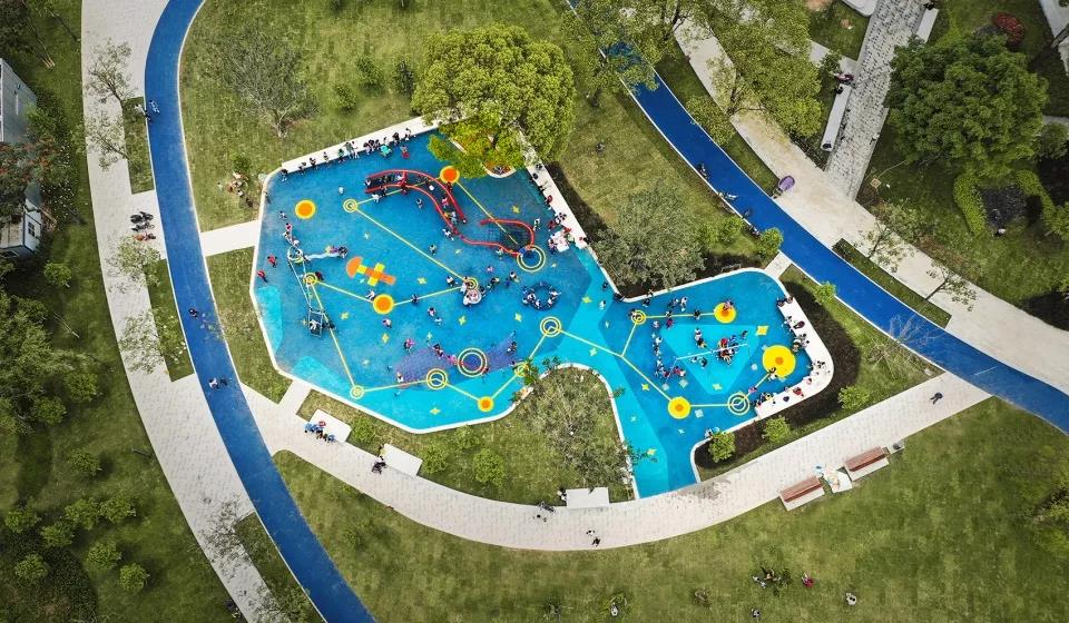 位于粵港澳大灣區核心地帶的寶安中心區四季公園,是一個由景觀基建驅動更新的公園項目,總占地面積約43,000平米,原先是被預留為高架路匝道。伴隨著周邊的交通完善和城市發展,設計將它重新定位為一個通往寶安中心區和前海片區的門戶公園。