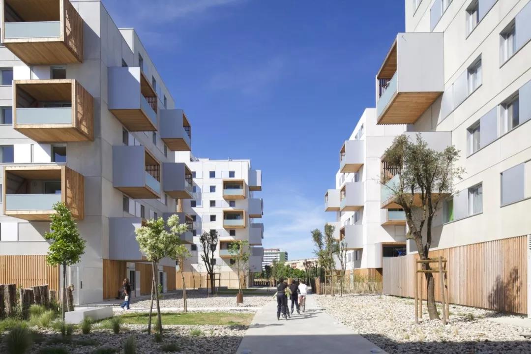 人行中央廣場有每周一次的集市,有商店以及許多協會組織在房屋底層的鋪面……一些能使這個居住區生氣勃勃的空間。這個建筑項目通過與外部建立一種和諧關系,并與自然緊密聯系,來試圖回應潛在購買者“對房屋的渴望”。