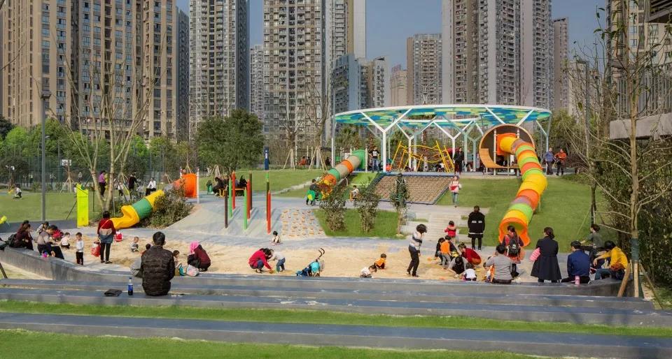 據相關部門統計,重慶心湖北體育文化公園自開放后,日均人流量達到3300多人次,除了周邊居民,街道、學校也常常來此舉辦活動。從住區到社區,從公有到共有,邊角公園進一步擴大人與人的交往空間,提供了更多樣的生活方式。