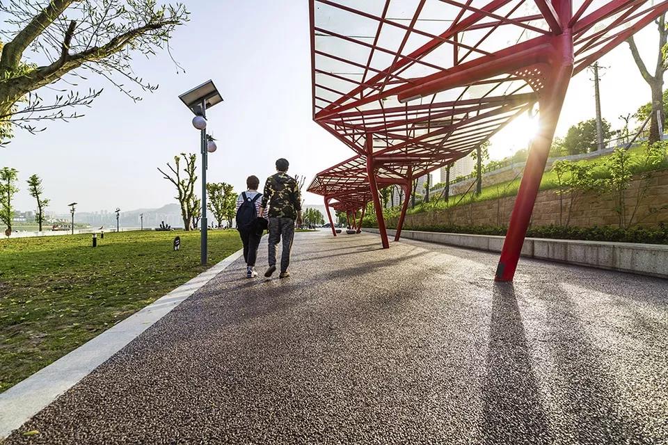 本項目設計大膽創新,取得了非常好的社會及景觀效果。現在項目已經成為當地市民游玩休閑的熱地。該項目設計功能合理、用材樸實、空間舒適宜人,環境自然生態,不僅提升了城市環境品質,也是濱江消落區的成功示范點。