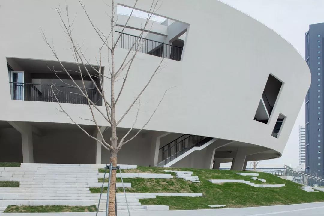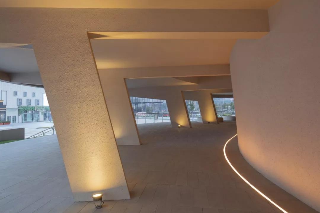 因工期及施工工藝原因,我們期待的結構可讀性效果這次未能呈現,內外環及斜撐柱梁原本設想為混凝土粗糲的質感,暫時均被噴上白色砂漿。經與業主溝通后,今年將會啟動復原工程。