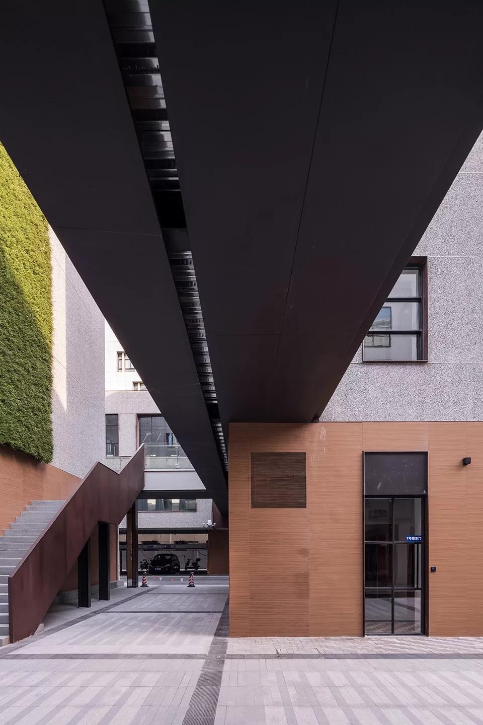 垂直綠化在豐富內街景觀的同時也加強了墻體的節能效果。