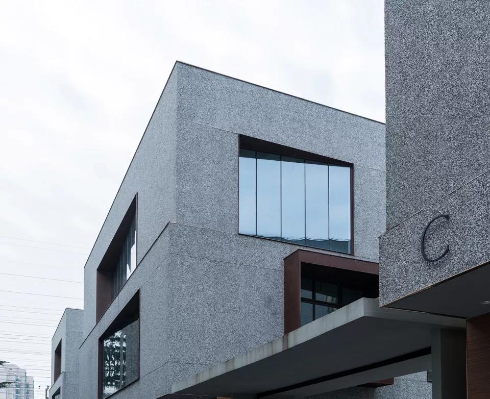 因此,我們選用了老洋房的外立面經常使用的水洗石和柚木作為主要材料,將老建筑獨有的柔和的氣氛保留在立面上。