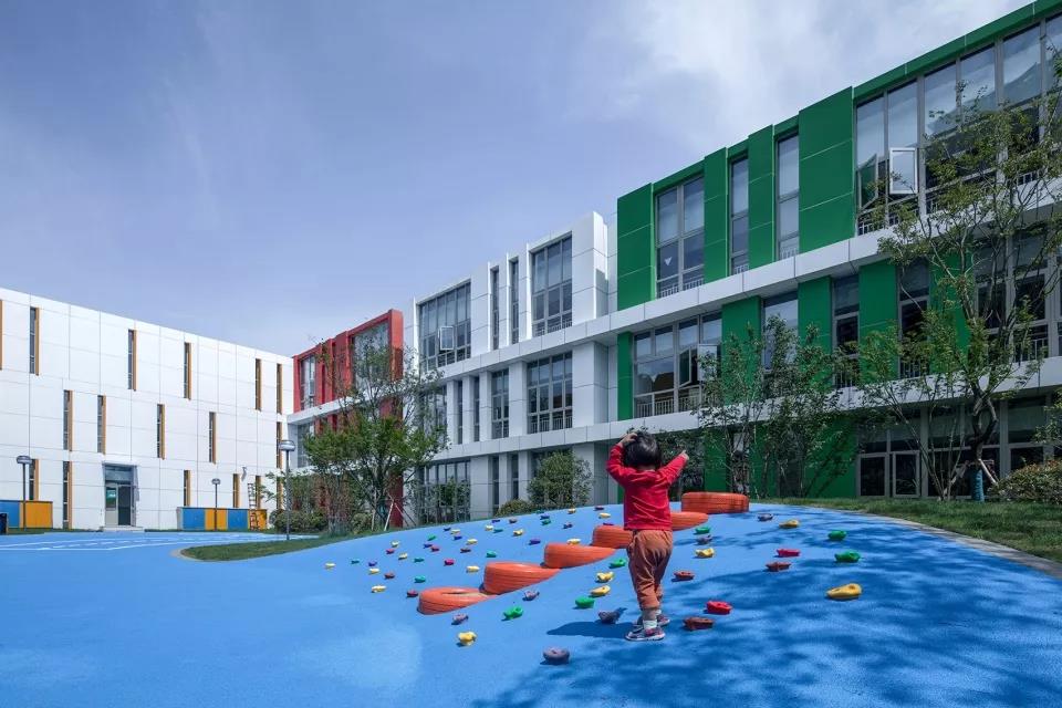 色塊成為建筑師給這個城市空間和幼兒園孩子們的禮物