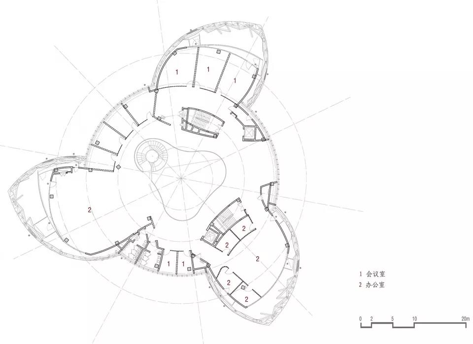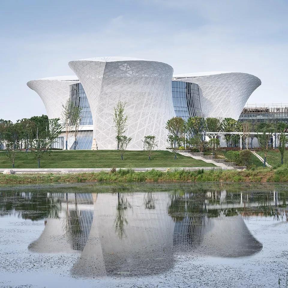 設計將“TUS-ICON”的概念與三螺旋模式相結合。形成富有靈動的三片葉子,緊接著進行找形及形態優化的工作。整體造型由三片立體旋轉上升的葉子及中間的裙體組合而成。