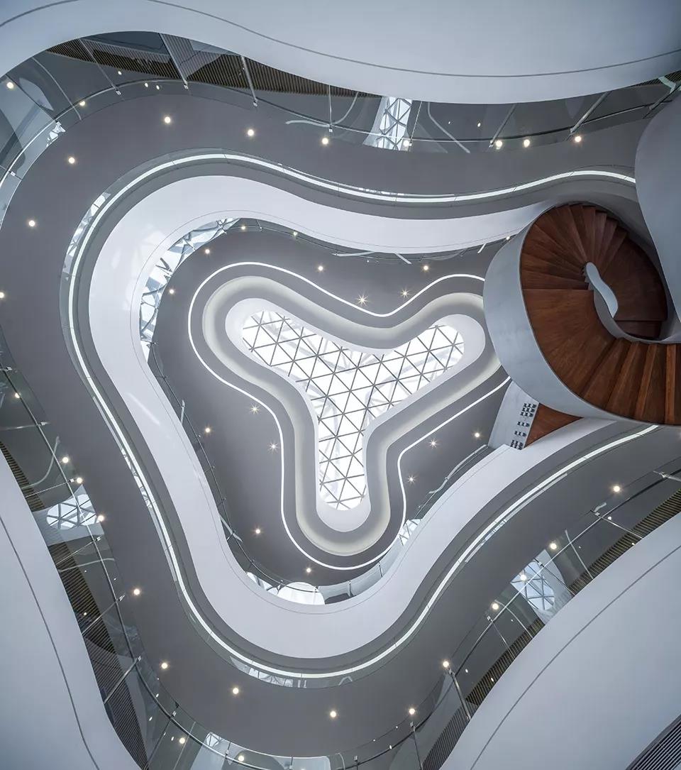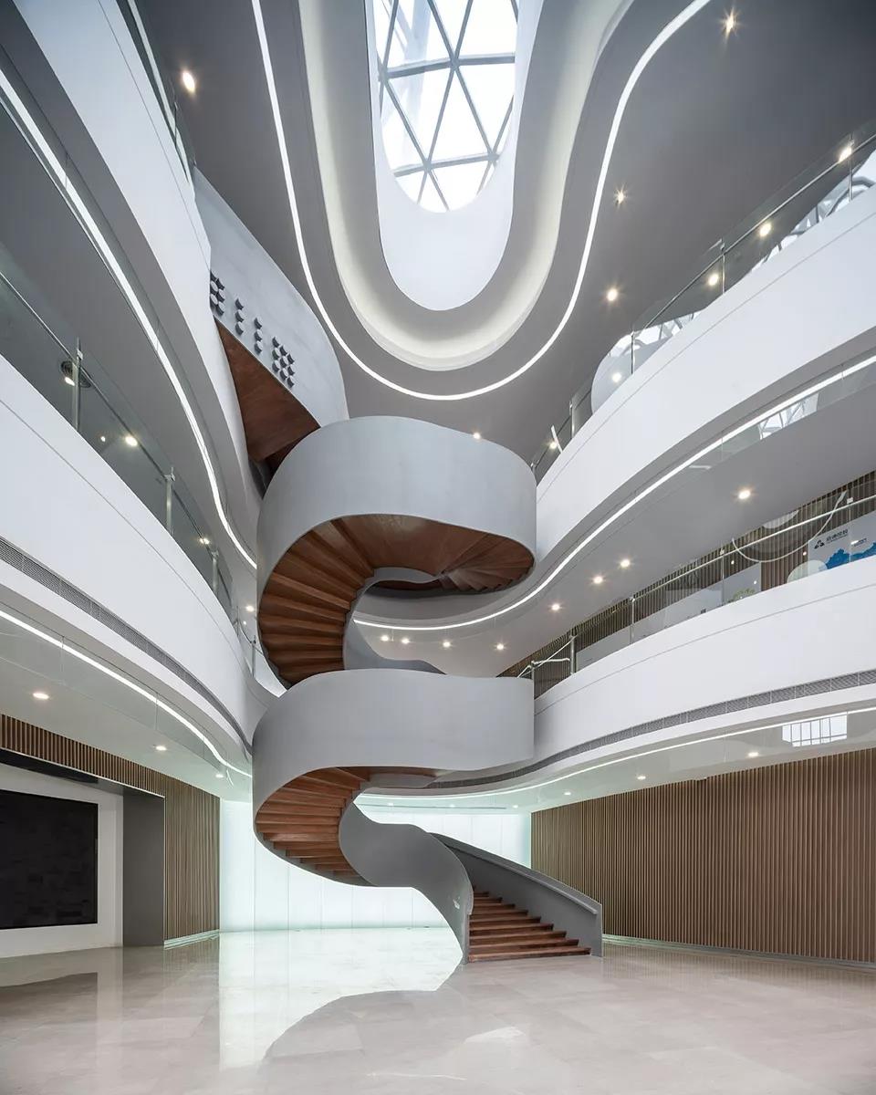 建筑內部空間圍繞核心中庭予以布置,螺旋上升的旋轉樓梯將啟迪文化魅力展示有機的串聯了起來。作為設立集展示、交流、服務功能于一體的綜合性工作場所吸引新興科技企業入駐,促進企業的成長壯大。為科技人員、投資者、建設者提供學術思想、技術信息、創業創新技能的交流場所。