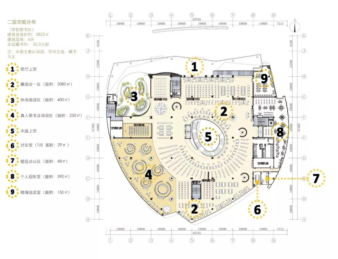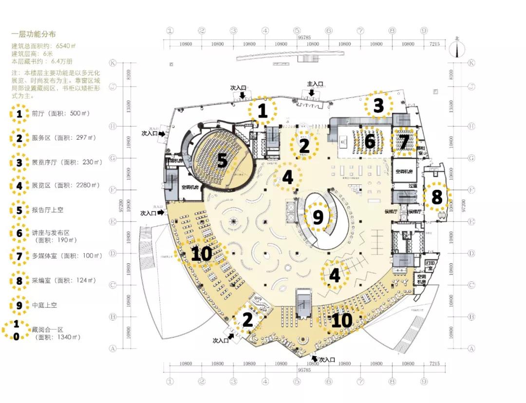 各層功能分布充分考慮現代圖書館的開放和高效性特點及新技術、新管理方式的采用。圖書館平面布局緊湊而有條理,交通組織便捷通暢,在分布藏書區、藏閱一體區、閱讀區、休閑閱讀區、私密閱讀區、交流探討區時,考慮到各功能分區之間的關聯、管理和查閱的便捷與高效性。