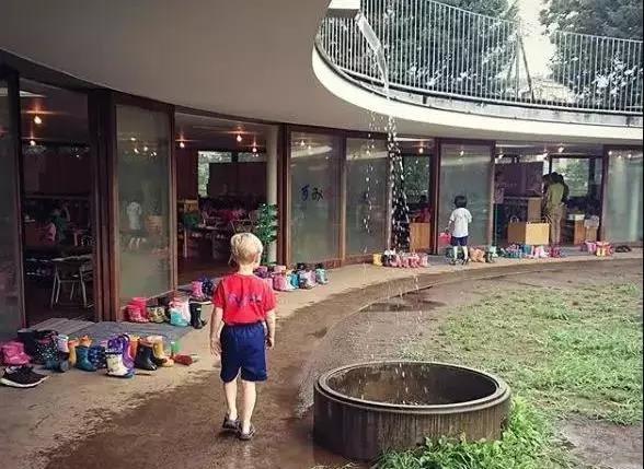 同時,屋頂水槽的設計獨到,雨水從五個地方落入五個大盆里,這樣孩子們在下雨天就可以看瀑布啦。