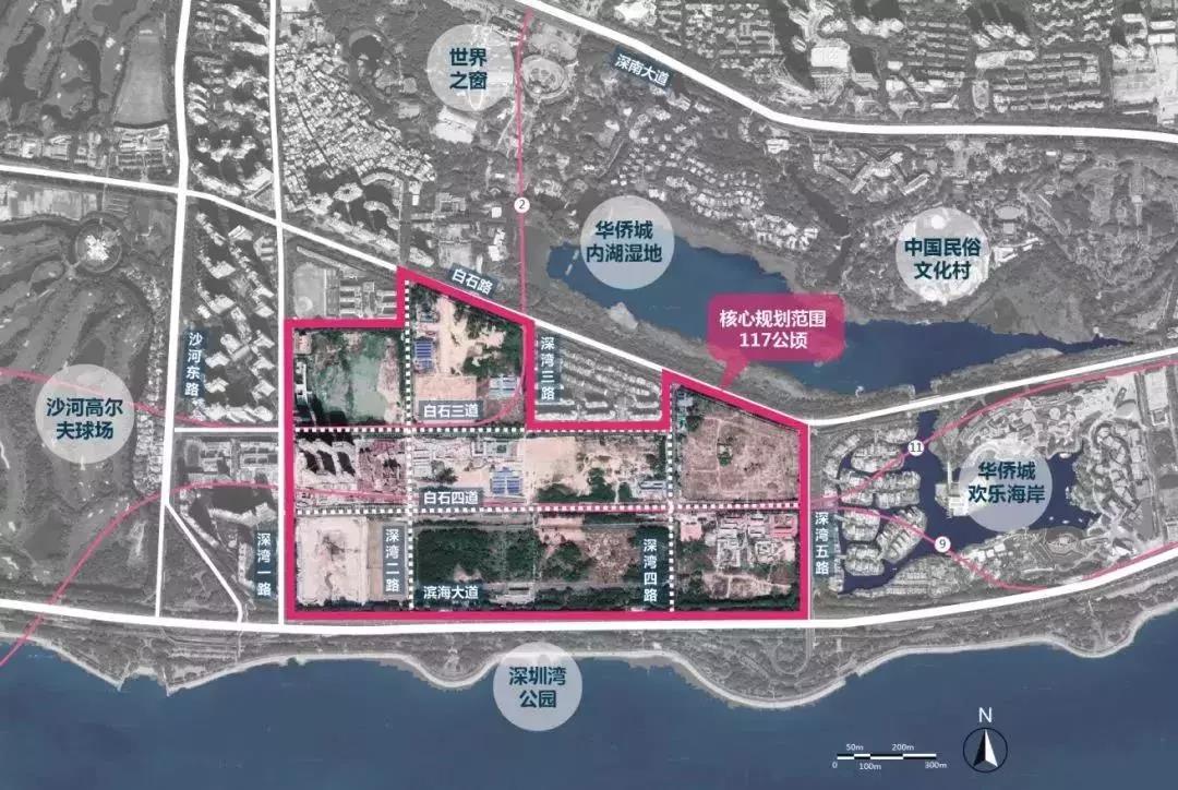 本次規劃核心范圍為濱海大道、深灣一路、深灣五路、白石三道、白石路所圍合的區域,用地面積117公頃。其規劃建設要求為“世界眼光、國際標準、中國特色、高點定位”。