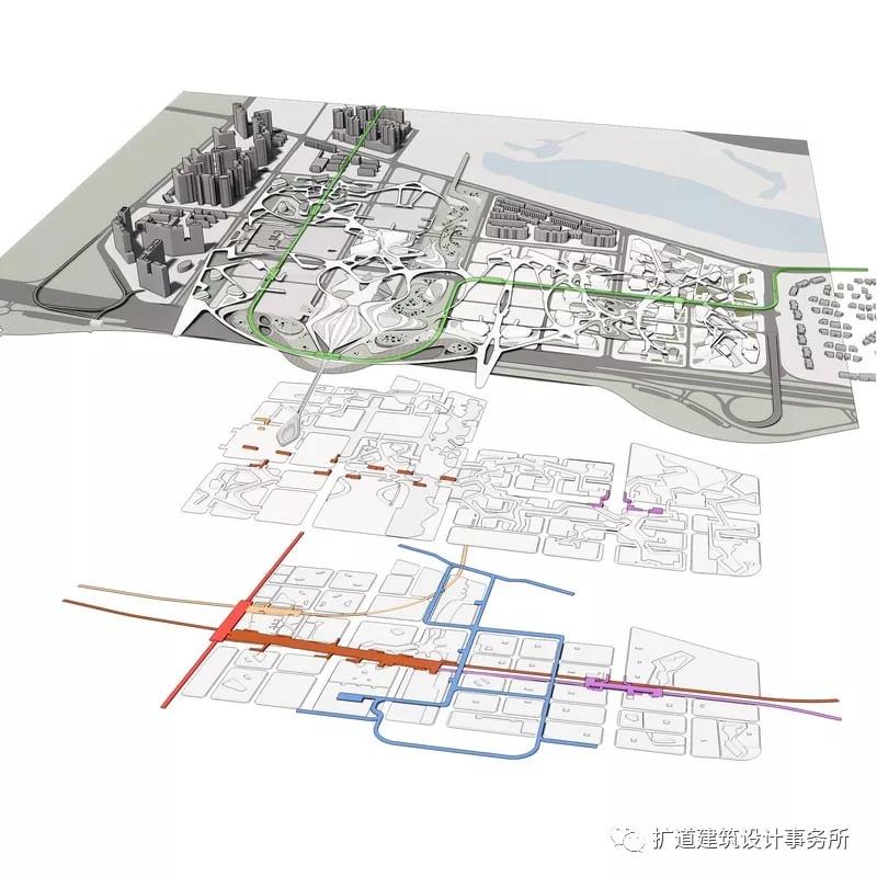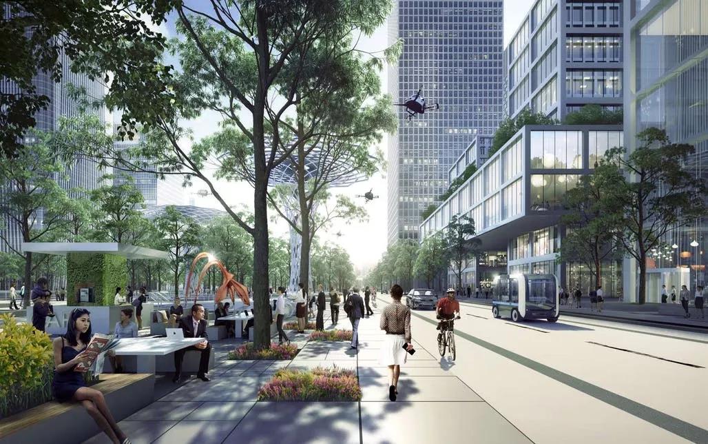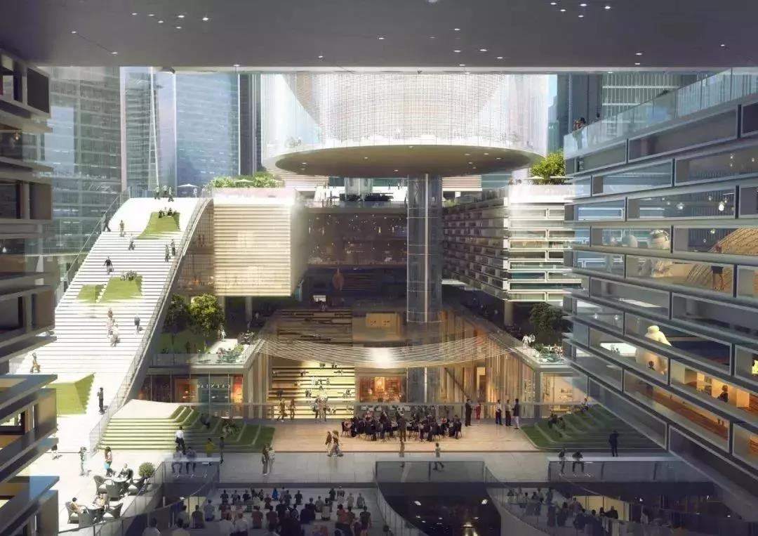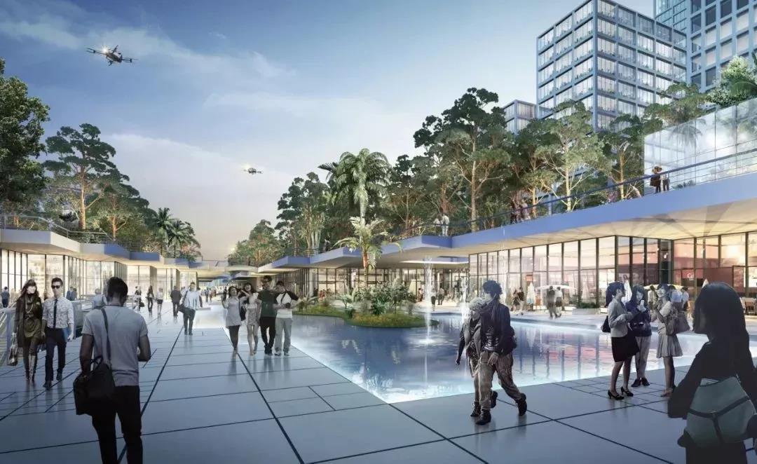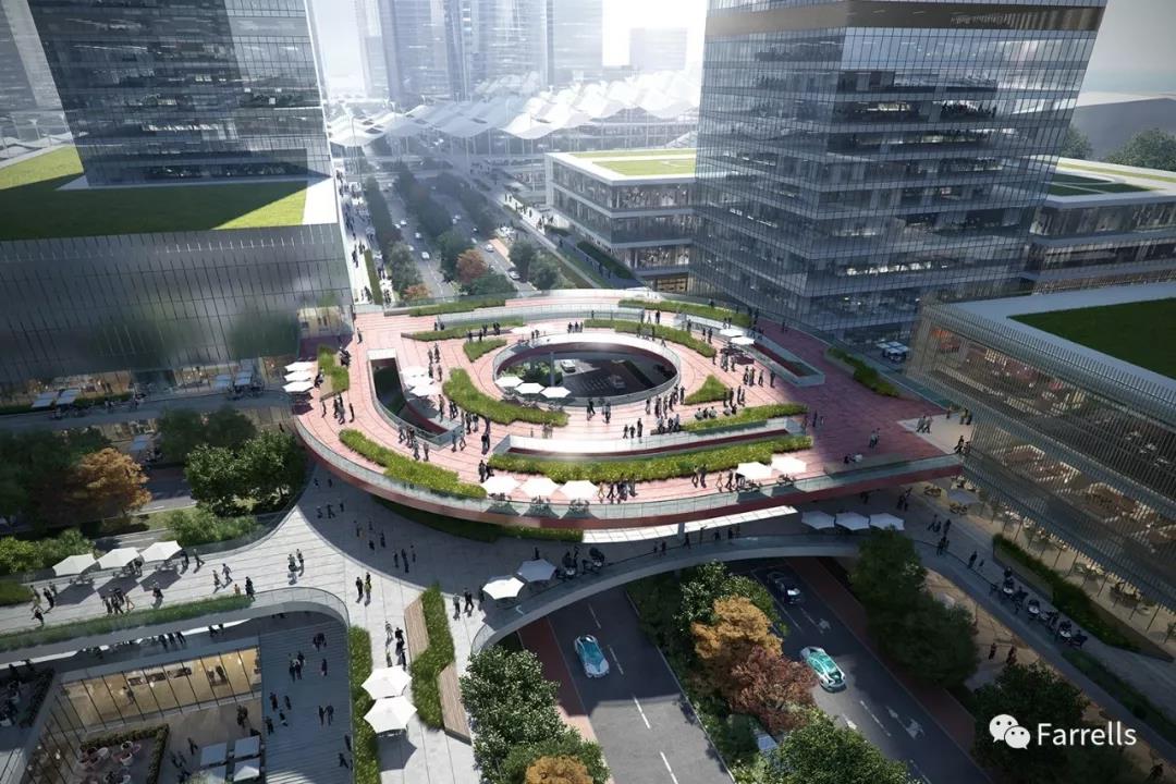 總體規劃還包括校園式的工作場所和主要節點上的“都市空間”——嵌入多級步行網絡的社交空間,為人們提供會面、工作和娛樂的機會。