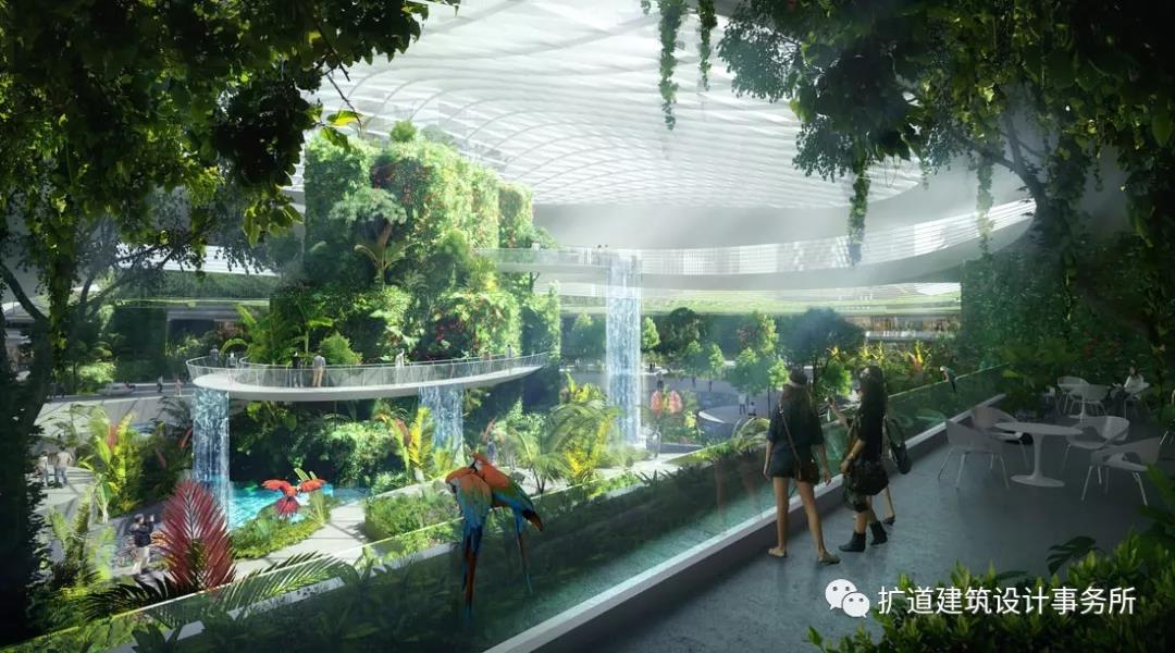 未來公園的入口與連接到超級購物商場相連,是一個由氣候控制的綠色環