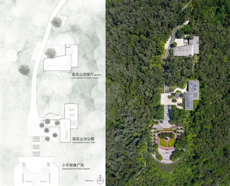 ▼蓮花山頂公共衛生間緊鄰小平像廣場,與展廳共同組成了山頂建筑群