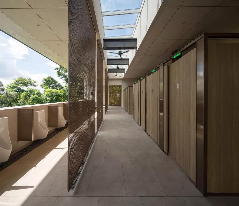 ▼男廁用金屬網簾進行區隔遮擋,進一步增強了私密性